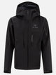 Arc'teryx "Alpha SV" Jacket. Made of GORE-TEX Pro fabric with Most Rugged technology, it uses 100 percent recycled materials for the outer surface. The jacket features an articulated construction that facilitates movement and incorporates microgrid backing for high resistance to abrasion and contamination. StormHood is helmet-compatible and designed for coverage and visibility. RECCO® reflector included.