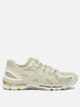 Asics "GEL-KAYANO 20" sneaker, constructed with a breathable mesh upper and synthetic fiber reinforcements. The structure incorporates a FluidFit cage composed of crisscrossed TPU inserts designed to provide localized support in the most stressed areas. The silhouette features technical lines inspired by architectural and automotive design, with a multilayer composition that recalls the aesthetics of the 2010s. The cushioning system integrates GEL units on the forefoot and rearfoot.