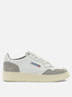 Autry "Medalist Low" sneaker with natural-looking leather upper, paneled construction and low-profile silhouette. The toe features microholes. Collar is padded for support and comfort. Flat cotton lace-up closure. Mixed leather and cotton terry lining. 2 cm raised insole, visible stitching, flat rubber outsole.