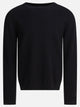 C.P. Company wool and silk crew-neck sweater with a 14-fine texture. The garment features compact knit construction in ultrafine merino wool and silk, featuring regular knitting and uniform texture. The pattern offers regular silhouette and distinctive details such as ribbed knit cuffs, crew neck and hem. A logo label is applied to the hem, maintaining essentiality and attention to construction details.