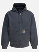 Carhartt WIP "OG Active" jacket with polyester construction and polyester inner padding. The silhouette is defined by the adjustable drawstring hood and full-length central zipper closure. Patch front pouch pockets, visible seams along the hem and contoured panels contribute to the garment's construction. The surface has a smooth, compact finish with functional details and integrated structural elements.