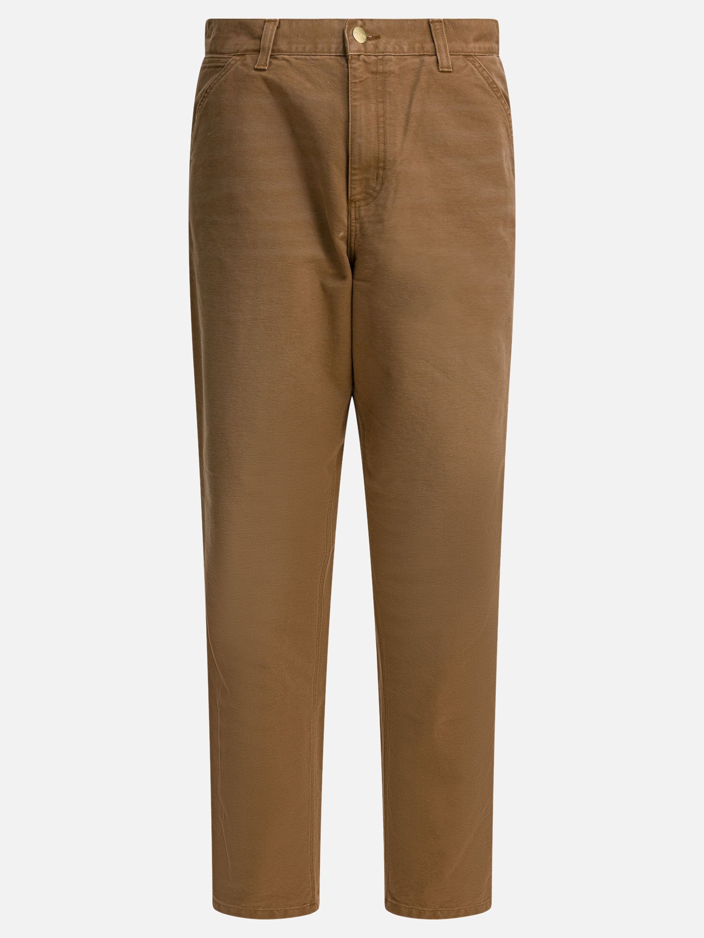 Carhartt WIP "Single Knee" pants, made of heavy Dearborn cotton canvas. Comfortable straight-leg construction, regular waist. Reinforced seams with triple stitching along the most stressed areas and joist stitching at the points of greatest wear. Features side pockets, hammer loop and tool pockets. Front zipper closure and square fabric label detail applied to the back.
