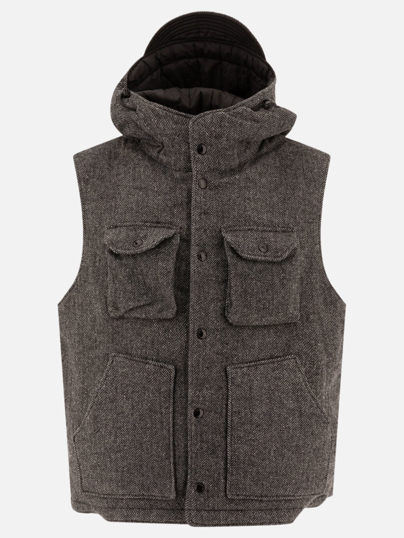 The sleeveless "Field" vest by Engineered Garments represents the essence of functional clothing with a touch of vintage style. Designed for the modern man, this garment is ideal for those who like to combine practicality and trendiness flawlessly. Made of durable cotton and featuring a drawstring hood, it offers protection from the elements while maintaining a clean, refined look.