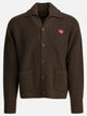 Human Made wool cardigan made of shaved knit with a soft texture. The garment features a compact construction with a removable collar applied by snap buttons. There are two patch pockets on the front and a heart-shaped patch sewn on the left chest. The sleeves are long and feature a wide line, completing a relaxed and regular silhouette.