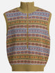 Kapital "Fair Isle" vest, made with Fair Isle jacquard pattern on a knit base. The construction features a wide silhouette characterized by a generously sized bust and armholes, with dropped shoulders. The garment features a half-zip closure at the front. Neck, armholes and bottom hem are ribbed. Compact knit finish and regular weave.