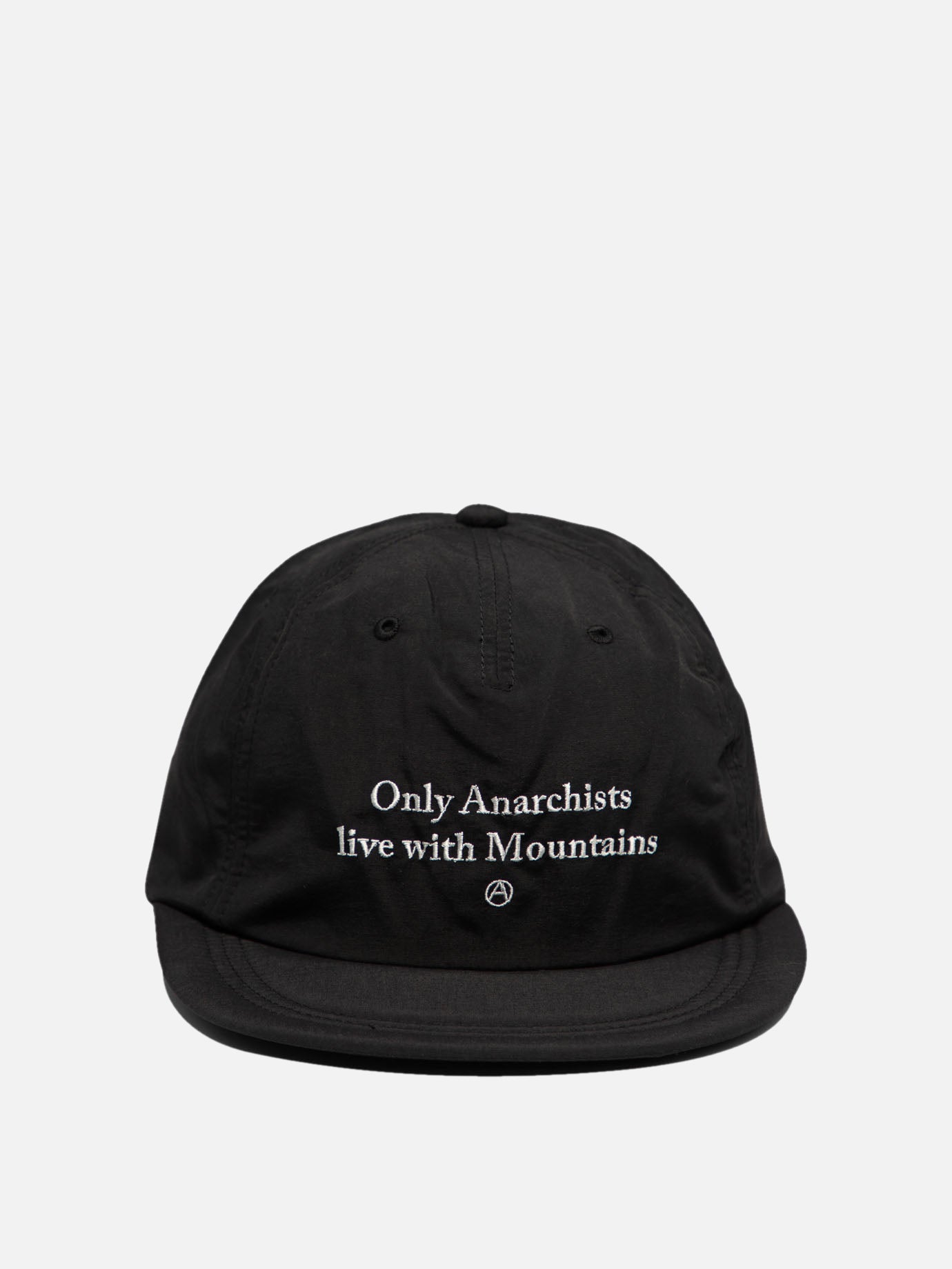 - The nylon supplex cap has Only Anarchist live with Mountains embroidered on the front panel.