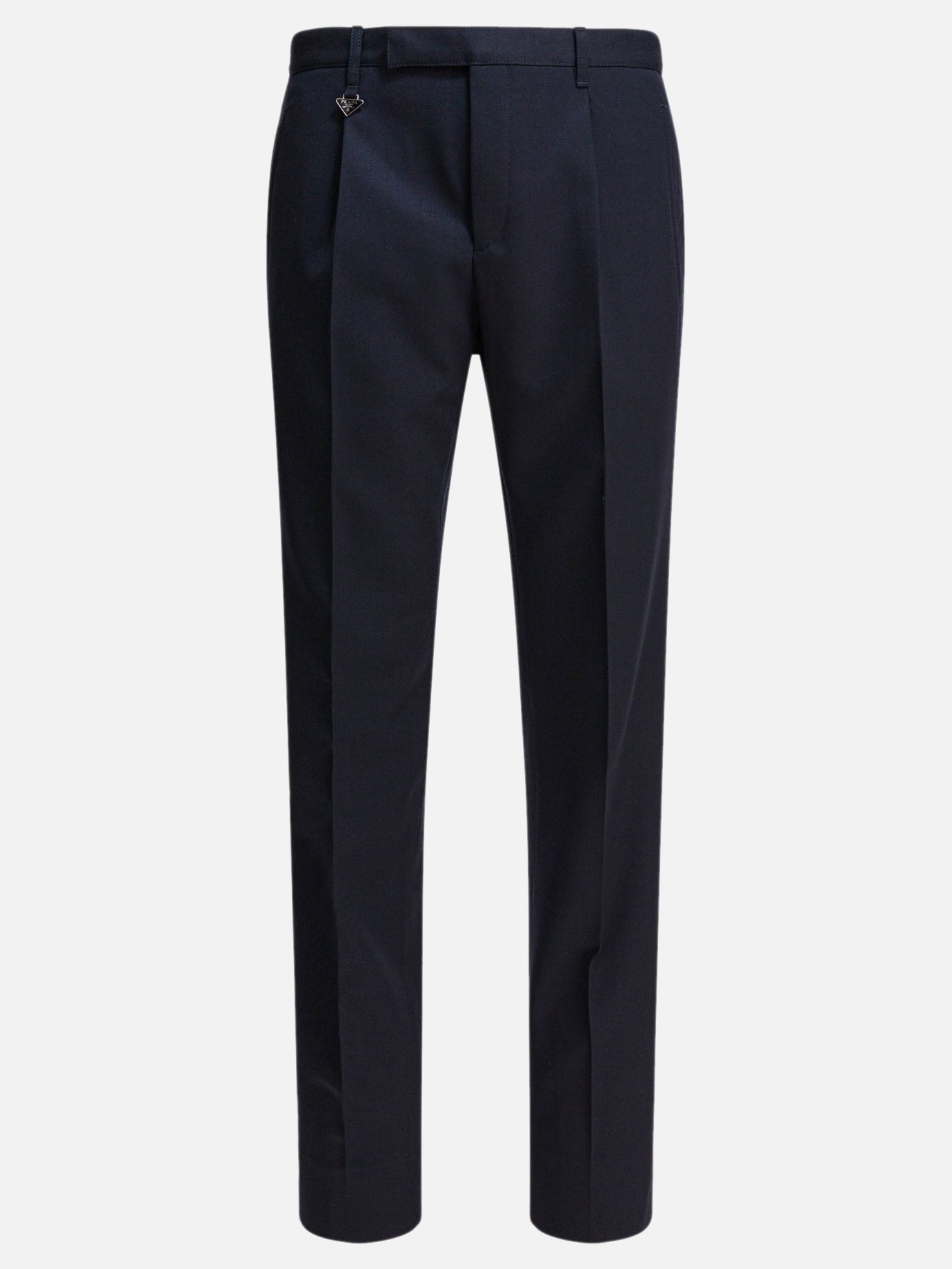Elegant and contemporary, Prada's wool trousers stand out for their tailored construction and the essentiality of classic details. Ideal for the wardrobe of the man who loves refinement, these pants represent a perfect blend of tradition and innovation, offering a dry aesthetic that enhances the silhouette without compromising comfort.