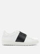 Valentino Garavani "Open" sneaker features a calf leather upper with a uniform surface and linear structure. The silhouette is rounded at the front, with a contrasting leather center band integrated into the construction. The closure is provided by flat laces, while the smooth rubber sole extends to the back, where rubber studs are applied as a functional detail. The inner lining is made entirely of leather.