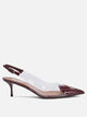 Slingback "Cœur" 55 mm Alaïa uses a leather and rubber sole construction, combining main materials such as leather and polyurethane. The design features a silhouette defined by a heart-shaped front cut-out, with a slim profile at the heel and an adjustable back strap. The kitten heel provides stability and support, integrated directly into the base for a seamless transition between upper and sole.