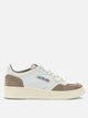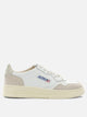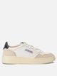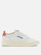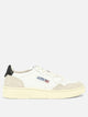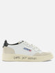 Autry "Medalist Low" sneaker with leather upper, featuring a low-profile silhouette and rugged construction. The construction features a microhole toe box and padded collar for targeted support. The tongue features a stitched label with embroidery, while the back shows an animal pony effect detail and embroidered logo. Finished with contrasting round laces in lurex material and side logo.