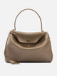 Balenciaga "Rodeo" shoulder bag made of waxed suede and smooth calfskin leather. The compact structure features a top handle and a removable shoulder strap. The silhouette highlights soft lines and rounded profile. The metal swivel closure with an antiqued silver finish combines with a large front pocket and side snap buttons that modulate volume. The interior includes a main compartment complete with zippered pocket, back with two flat pockets and lamb nappa leather lining.