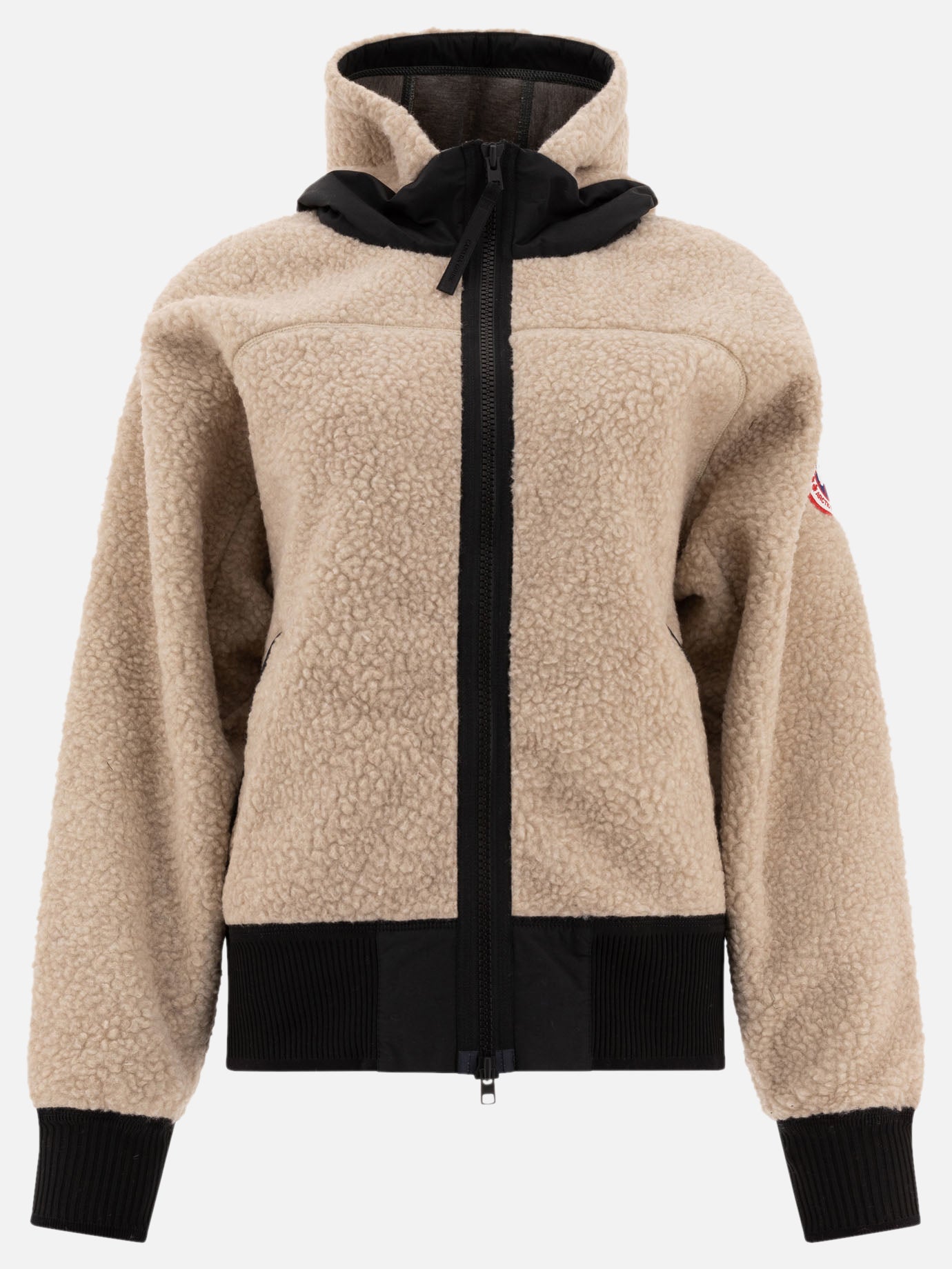 Canada Goose's "Simcoe" fleece jacket is the epitome of comfort and warmth for modern women. Designed with the coldest temperatures in mind, this jacket combines style and functionality with its design featuring dropped shoulders and structured high collar. Perfect for those who want to stay stylish even on the coldest days.