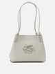 Etro small "Libra" shoulder bag, constructed of canva with frontal application of the Pegasus logo. The structure features threading on the upper corners. The two braided leather handles allow both shoulder and hand carryability, one of which is decorated with multicolored marbles. The interior provides a wall pocket with zipper closure.