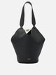 Khaite's "Lotus Mini" handbag, made of grained leather, features a scarf-inspired design and is distinguished by its lightweight construction. The rounded base ensures stability during use, while the compact silhouette promotes an ergonomic hand grip. The inner closure features jeweled frog, a functional element that ensures protection of the contents.