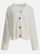 LouLou De Saison cashmere "Kaia Lds" cardigan made of shaved cashmere knit with a lightweight structure and straight silhouette. The neckline is V-neck, with three front buttons fastening the top. Ribbed details highlight the collar edge, flap, cuffs and bottom hem, lending stability to the finish. The sleeves are long and the construction is designed to provide comfort in the regular fit.