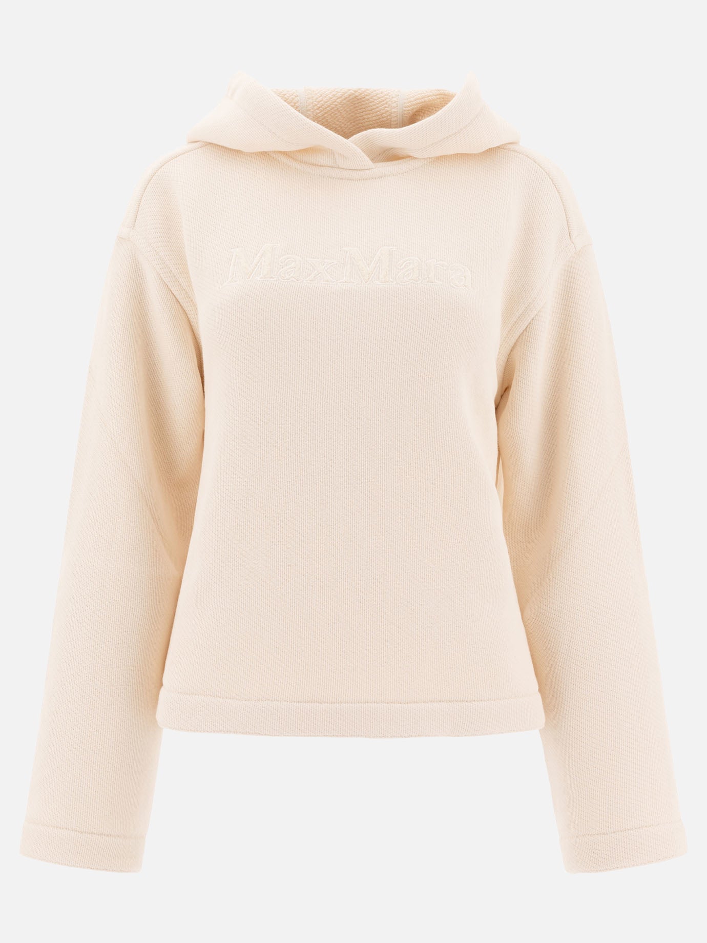 Discover Max Mara's embroidered logo sweatshirt, the must-have for those who want a casual yet refined look. Made of soft cotton, this short sweatshirt features a relaxed fit that ensures maximum comfort. Ideal for women who don't give up style on casual days.
