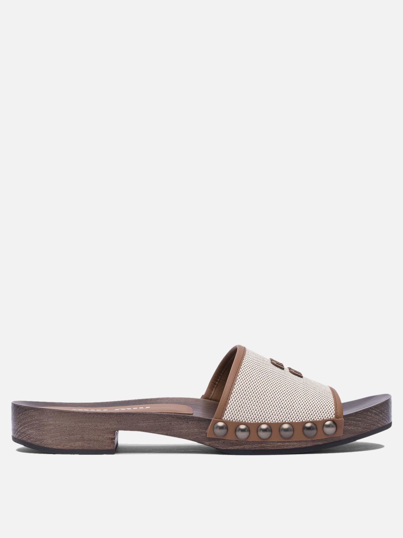Discover the perfect balance of comfort and style with Miu Miu's canvas and leather clogs. These clogs are a tribute to casual elegance and boast refined details that embody the essence of the brand. An accessory that cannot be missed in the wardrobe of those seeking a distinctive and elegant look, designed for the woman who likes a touch of personality in her everyday style.