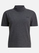 Miu Miu cashmere polo shirt features a shaved knit construction and is made entirely of cashmere. The straight silhouette accompanies clean lines, with an English shoulder structure and short sleeves. The collar features a ribbed knit, while the Miu Miu logo is inserted via inlay on the front. The knit offers a regular fit designed for comfort and shape stability.