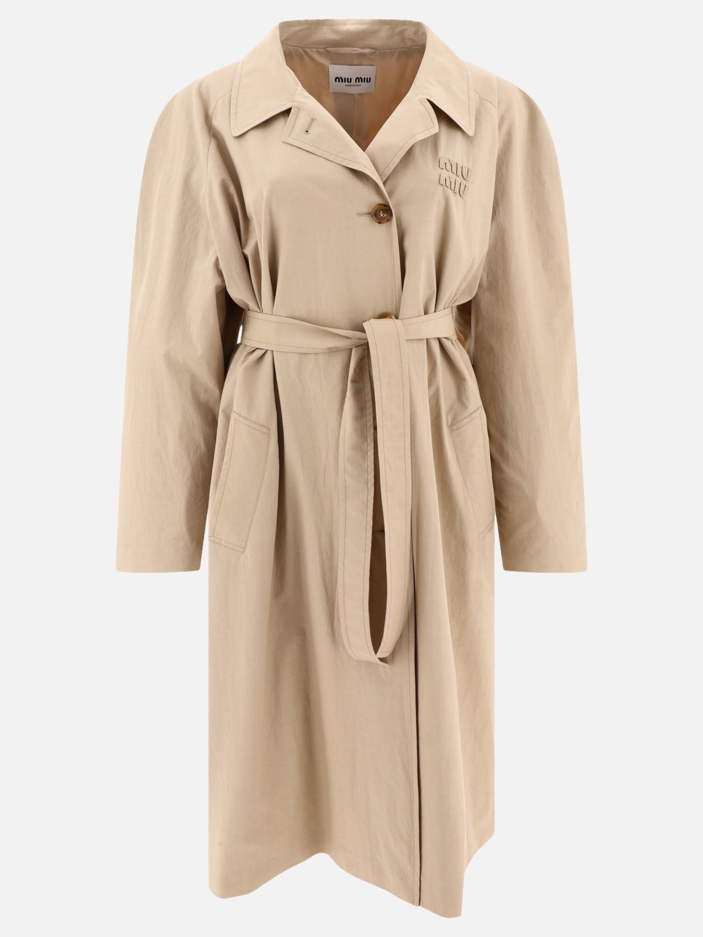 Discover the double-breasted logo raincoat from Miu Miu, designed for the modern woman who wants a stylish and functional look. With a refined cut and regular fit, this garment represents the perfect balance between style and practicality.