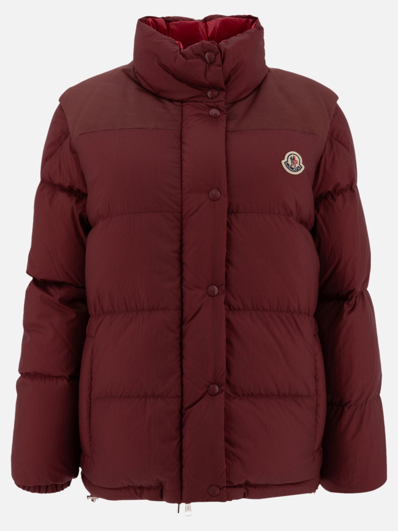 The Moncler "Verone" reversible down jacket is a contemporary reinterpretation of the classic 1980s down jacket. This cutting-edge model is transformable thanks to its removable sleeves, which also allow it to be worn as a vest. The shiny polyester side and the tear-resistant nylon side with a matte finish offer two distinct looks, complemented by the canvas logo and adjustable drawstring at the waist and bottom.