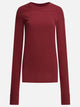 Cotton jersey T-shirt x Moncler Rick Owens, made from GOTS-certified organic cotton with a compact structure and lightly gauzy hand. The garment features a panel construction with rigid chest and shoulder applique, round neck and fitted silhouette. The embroidered Moncler + Rick Owens logo patch is located on the upper left arm. The shiny assembly highlights the linearity of the seams.