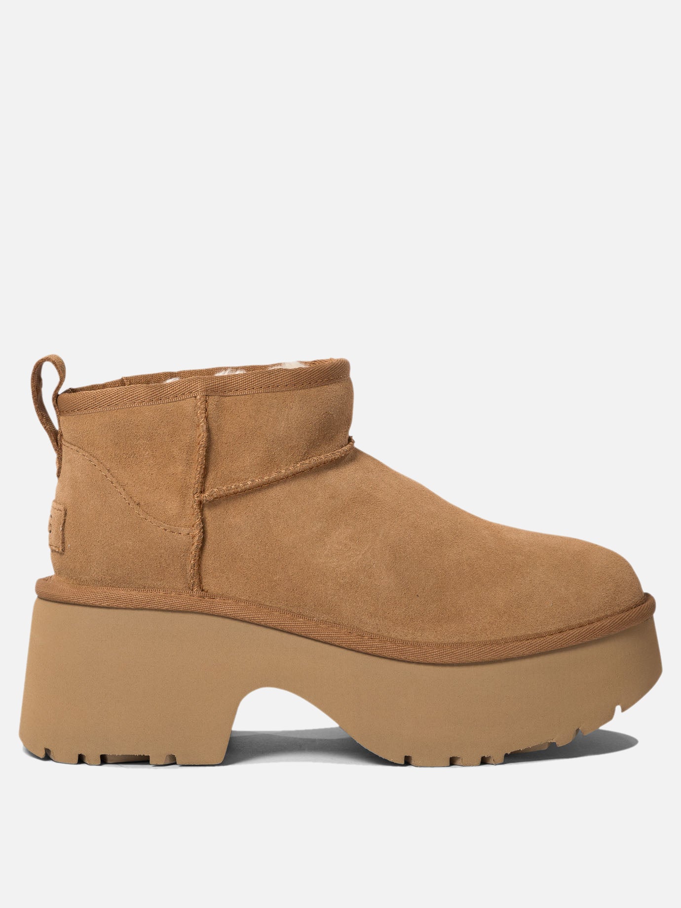 Discover the comfort and irresistible style of the UGG "Classic Ultra Mini New Heights" ankle boots. Perfect for adding a sophisticated touch to your everyday outfits, these ankle boots are ideal for the modern woman seeking a mix of elegance and practicality. With their suede upper and compact design, they fit easily into any wardrobe.