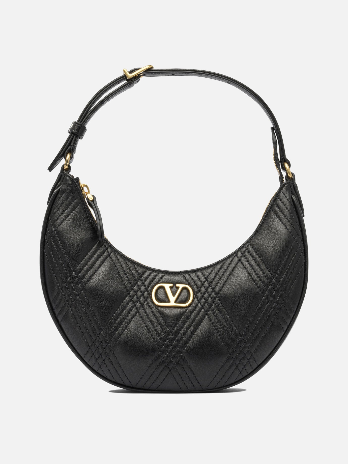 Valentino Garavani's "Quiltie 67" hobo shoulder bag represents a meeting of traditional craftsmanship and contemporary design. Made of fine nappa leather, this bag is distinguished by its quilted workmanship, which designs a diamond pattern with tone-on-tone stitching, creating a visual effect of great elegance. An ideal accessory for the woman who seeks a balance between functionality and beauty, perfect for wearing on various and heterogeneous occasions.